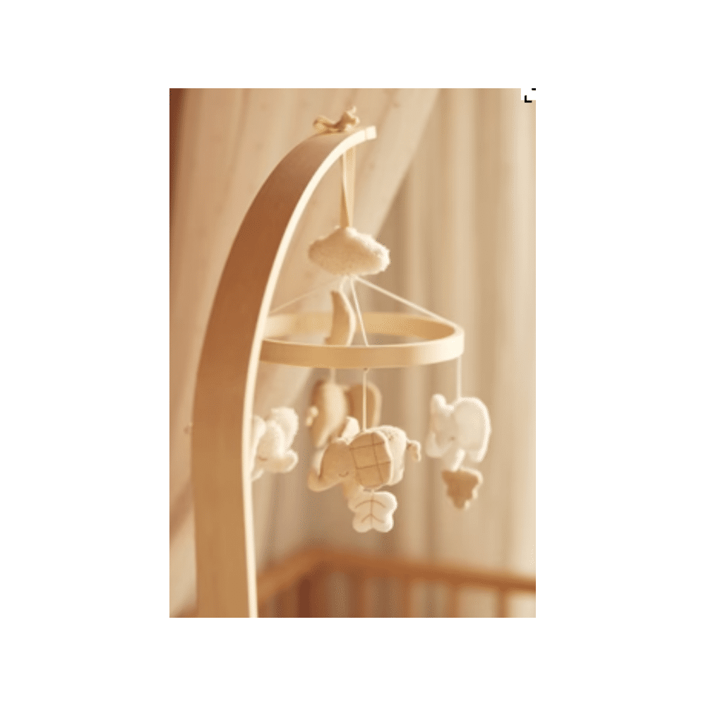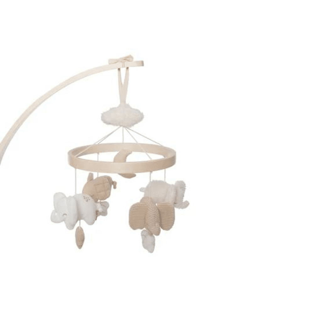 De Jollein Babymobiel Elephant Tales betovert je kleintje met vrolijke diertjes en zachte kleuren.Creëer een rustgevende en speelse omgeving in de babykamer.