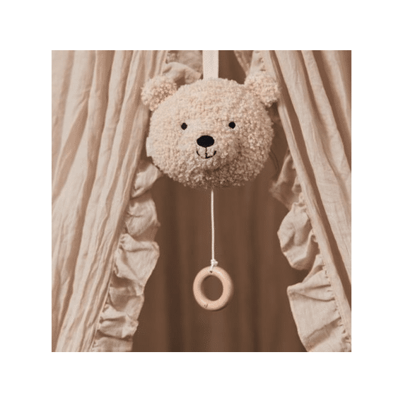 Dit muziekdoosje wordt opgewonden door de lus naar beneden te trekken. Het leuke beertje zorgt voor leuke decoratie op de babykamer!