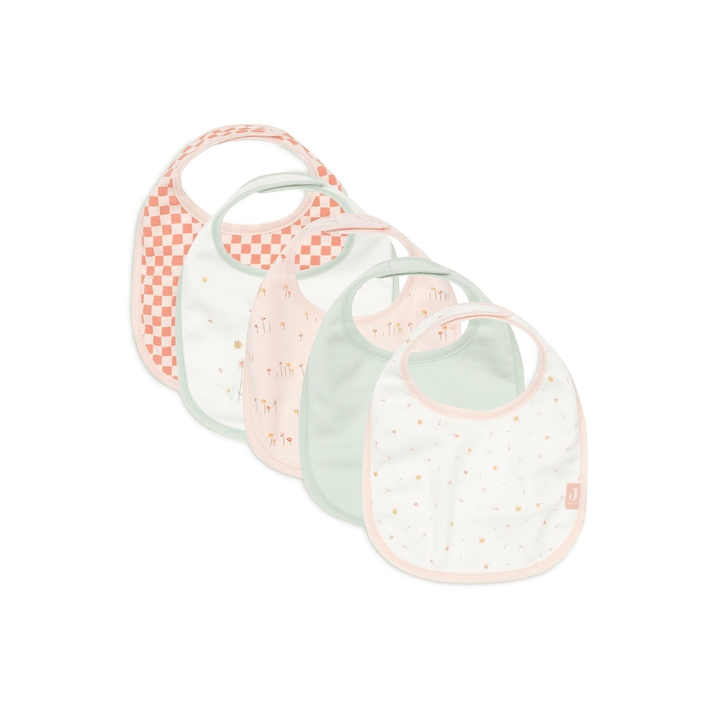 Met deze trendy Pretty Picnic slabbetjes maak je van elk eetmoment een zorgeloze ervaring.Je kiest voor comfort, bescherming en een leuke print in één praktische 5-pack.