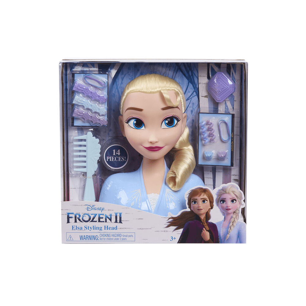 Dit kaphoofd toont Elsa met haar herkenbare blonde haren. Perfect om te kammen, vlechten en stylen. Het voelt aan als echt haar en is speciaal gemaakt voor kinderhanden.- Officieel Frozen 2 design