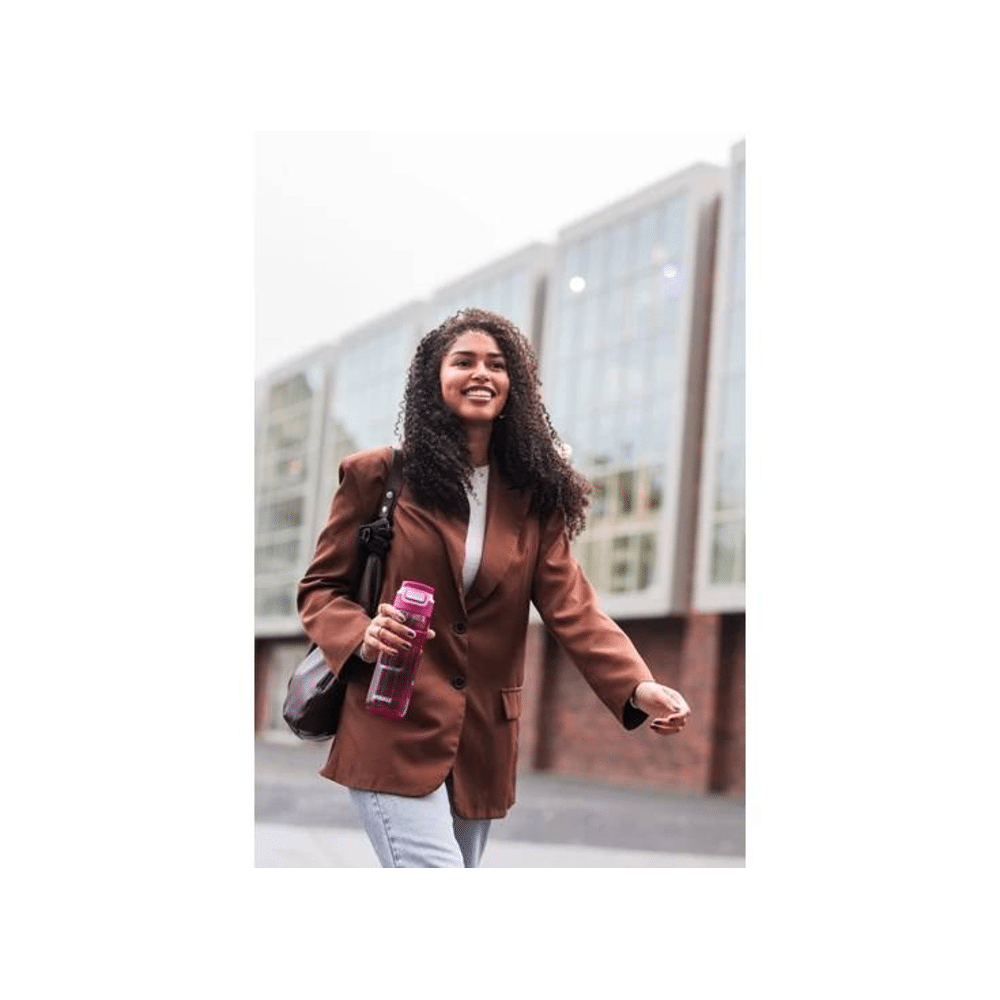 Het Tritan materiaal is licht, stevig en BPA-vrij. Dat maakt deze drinkfles een duurzame en veilige keuze voor dagelijks gebruik, zonder in te boeten op comfort of stijl.