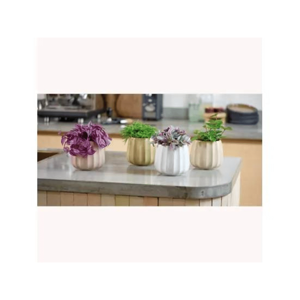 Deze keramische planter van 11cm diameter en 12cm hoogte is ideaal voor kleine planten, kruiden of vetplanten. Verkrijgbaar in 4 assorti kleuren, perfect om een frisse toets toe te voegen aan je woning of kantoor.