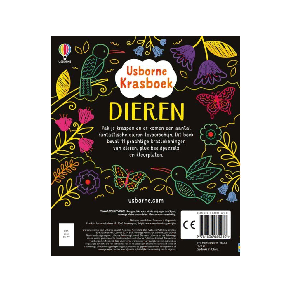 Creatief en interactief krasboek waarin kinderen met een kraspen verborgen dierenbeelden onthullen. Helpt fijne motoriek, concentratie en creativiteit te ontwikkelen. Elke pagina biedt een nieuwe verrassing voor urenlang speel- en leerplezier.