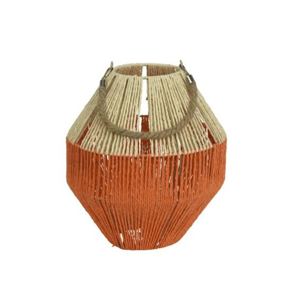 Deze lantaarn van papiertouw, 28 x 32 cm in oranje/kleur, brengt een gezellige en natuurlijke sfeer in je interieur of buitenruimte. Perfect voor op tafel, terras of als decoratieve verlichting tijdens avonden.
