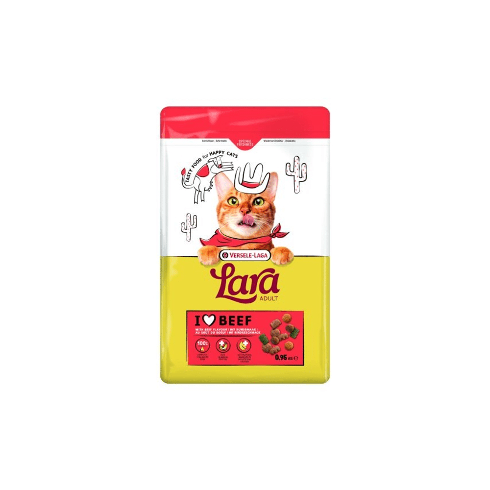 Met Lara Adult Beef 950g geef je jouw kat elke dag een voedzame, smaakvolle maaltijd vol rundvleesenergie.