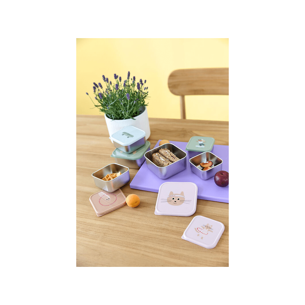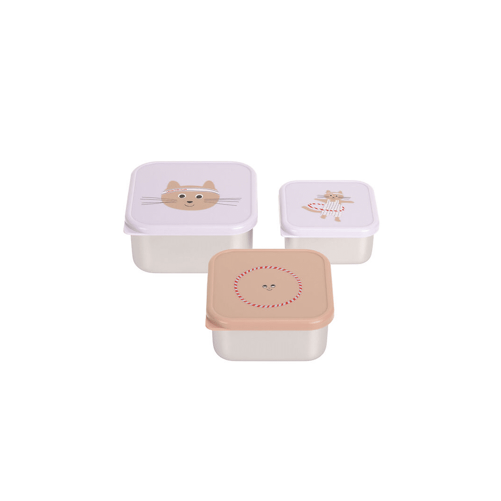De Lässig Snackbox 3 Stuks Tiny Team Cat is praktisch, veilig en superschattig.Perfect om snacks vrolijk en georganiseerd mee te nemen!