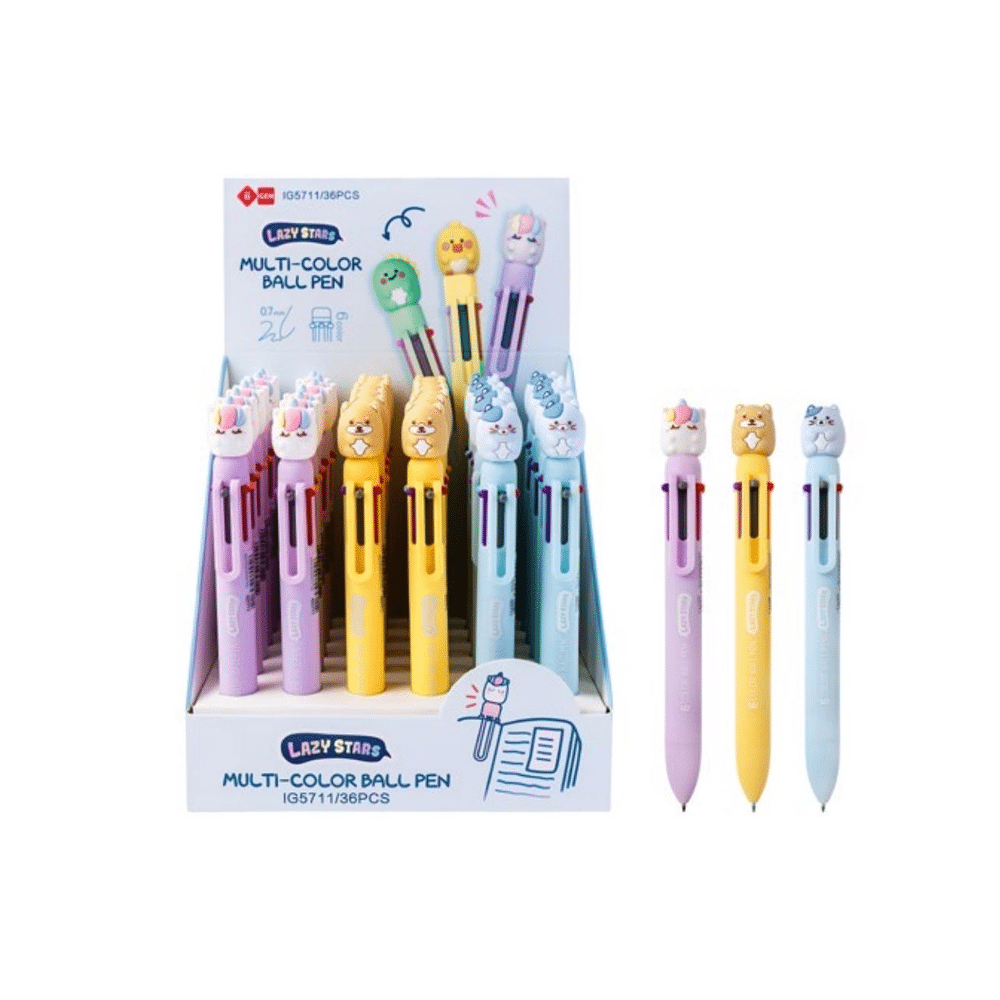 Kleur je dag met de Lazy Stars meerkleurige balpen! Jij schrijft in verschillende tinten met één pen, gewoon klikken en wisselen tussen kleuren. Kies jouw favoriet uit de schattige designs: eenhoorn, hond of kat. Ideaal voor school, werk of als vrolijk cadeautje. De zachte grip en soepele inkt maken schrijven nog fijner. Met Lazy Stars wordt elke notitie een klein kunstwerkje vol plezier!