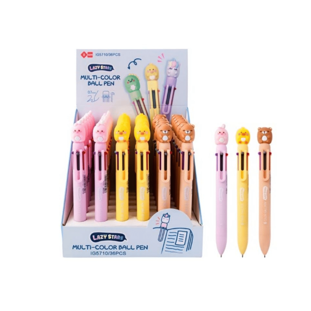 Breng kleur in je dag met de Lazy Stars meerkleurige balpen. Jij kiest je favoriete figuurtje, konijn, eend of beer, en schrijft in verschillende kleuren met één klik. Ideaal om te tekenen, notities te maken of je agenda op te vrolijken. De pen ligt goed in de hand en schrijft heerlijk soepel. Perfect voor school, werk of als vrolijk cadeautje. Met Lazy Stars wordt schrijven telkens opnieuw leuk en speels.