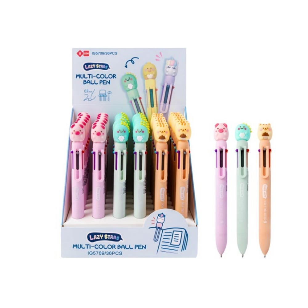 Schrijven wordt extra leuk met de Lazy Stars meerkleurige balpen! Jij kiest gewoon je favoriete dier: varken, dinosaurus of eekhoorn. Met één klik wissel je van tint, perfect om te tekenen, noteren of versieren. Deze speelse pennen zijn ideaal voor op school, op het werk of als cadeautje voor echte dierenvrienden. Laat je creativiteit los met deze vrolijke Lazy Stars pen!