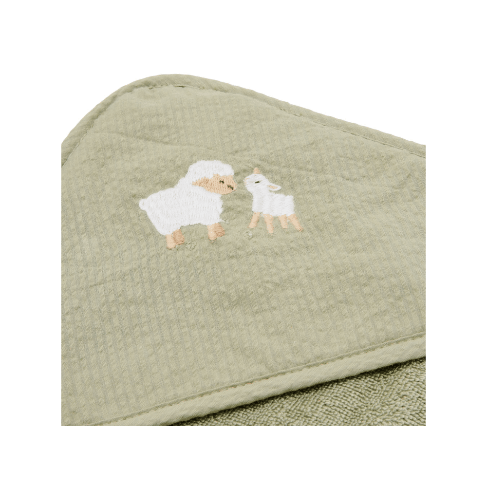Wikkel je kleintje na het bad in ultiem comfort met deze zachte badcape.Een schattige cape met Little Farm design, perfect voor warme, knusse momenten.