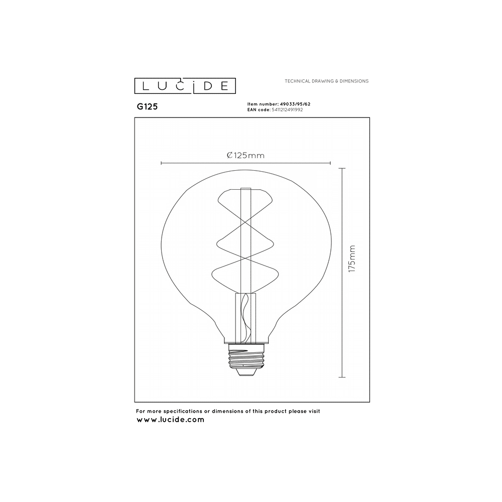 - Product: Lucide G125 - Filament Lamp - Ø 12,5 Cm - Led 3 Step Dimbaar (memory) - E27 - 1x4,9w 2200k - Amber