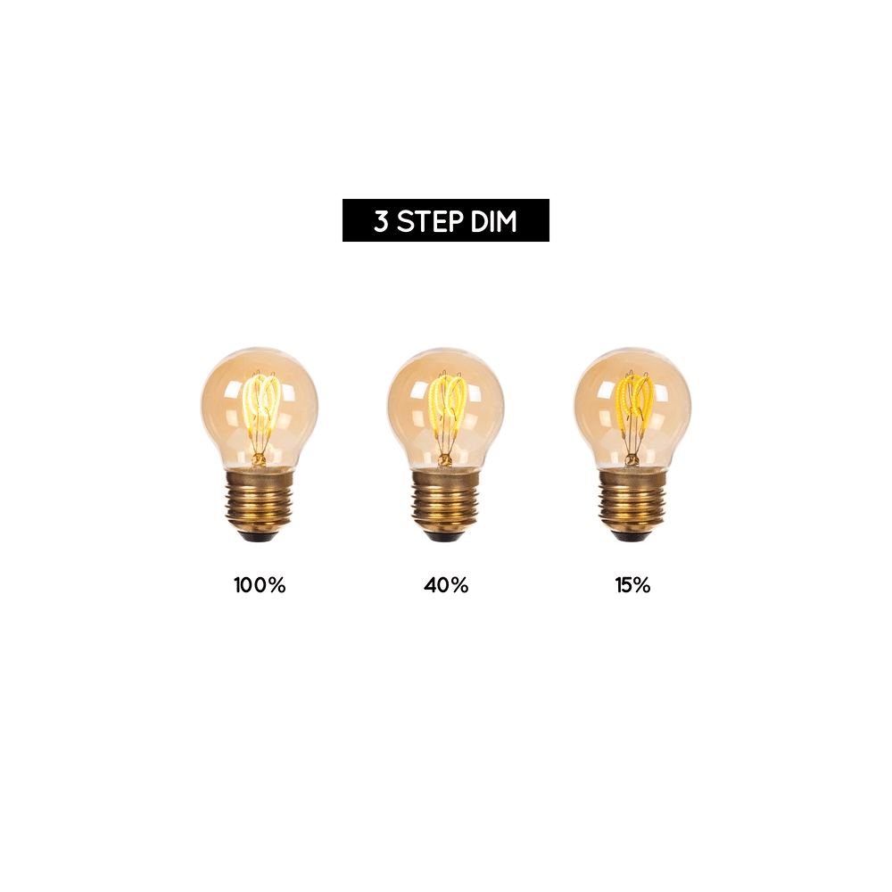 - Product: Lucide G45 - Filament Lamp - Ø 4,5 Cm - Led 3 Step Dimbaar (memory) - E27 - 1x3w 2200k - Amber