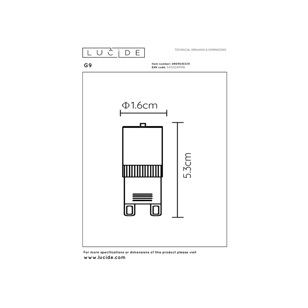 - Product: Lucide G9 - Led Lamp - Ø 1,6 Cm - Led Dimbaar - G9 - 1x3,5w 2700k - Wit