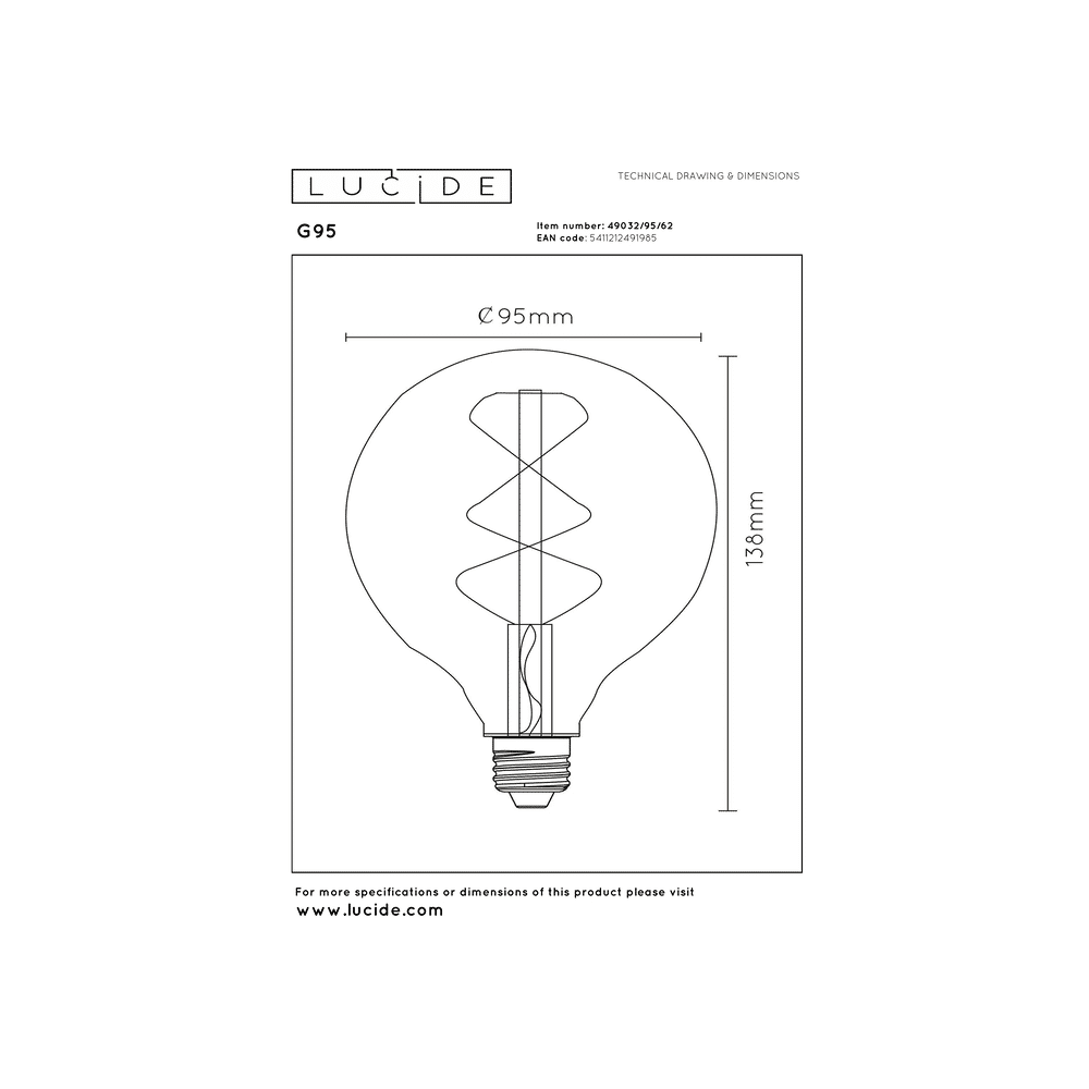 - Product: Lucide G95 - Filament Lamp - Ø 9,5 Cm - Led 3 Step Dimbaar (memory) - E27 - 1x4,9w 2200k - Amber