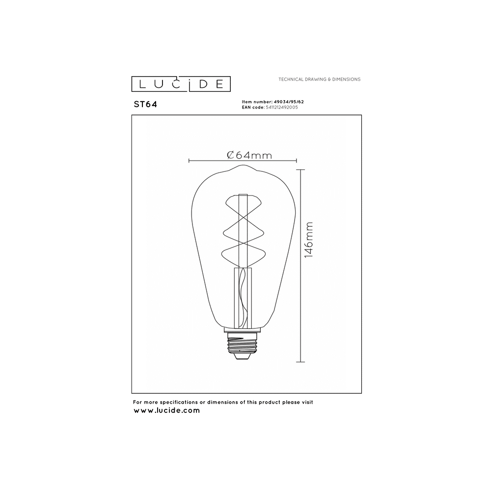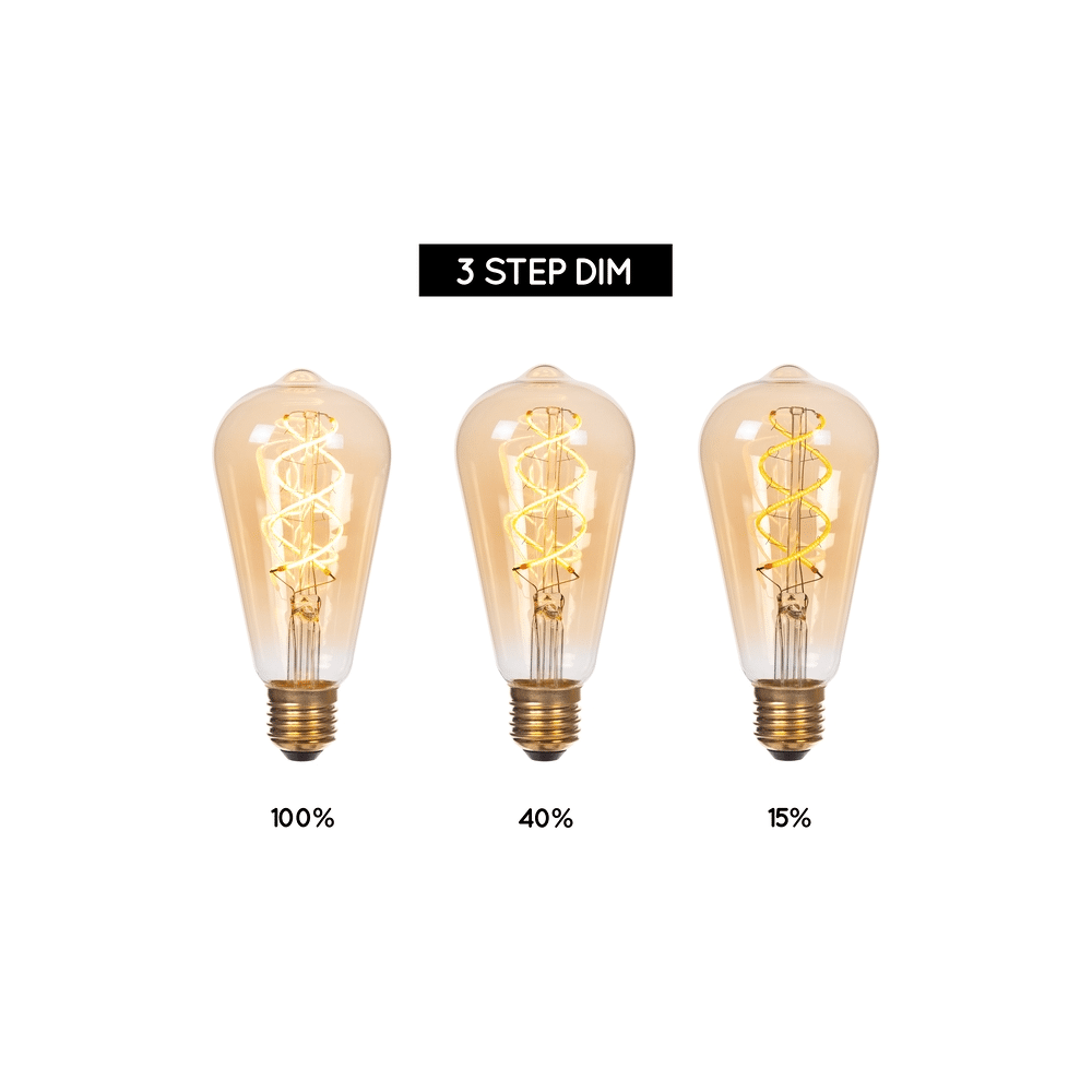 - Product: Lucide St64 - Filament Lamp - Ø 6,4 Cm - Led 3 Step Dimbaar (memory) - E27 - 1x4,9w 2200k - Amber