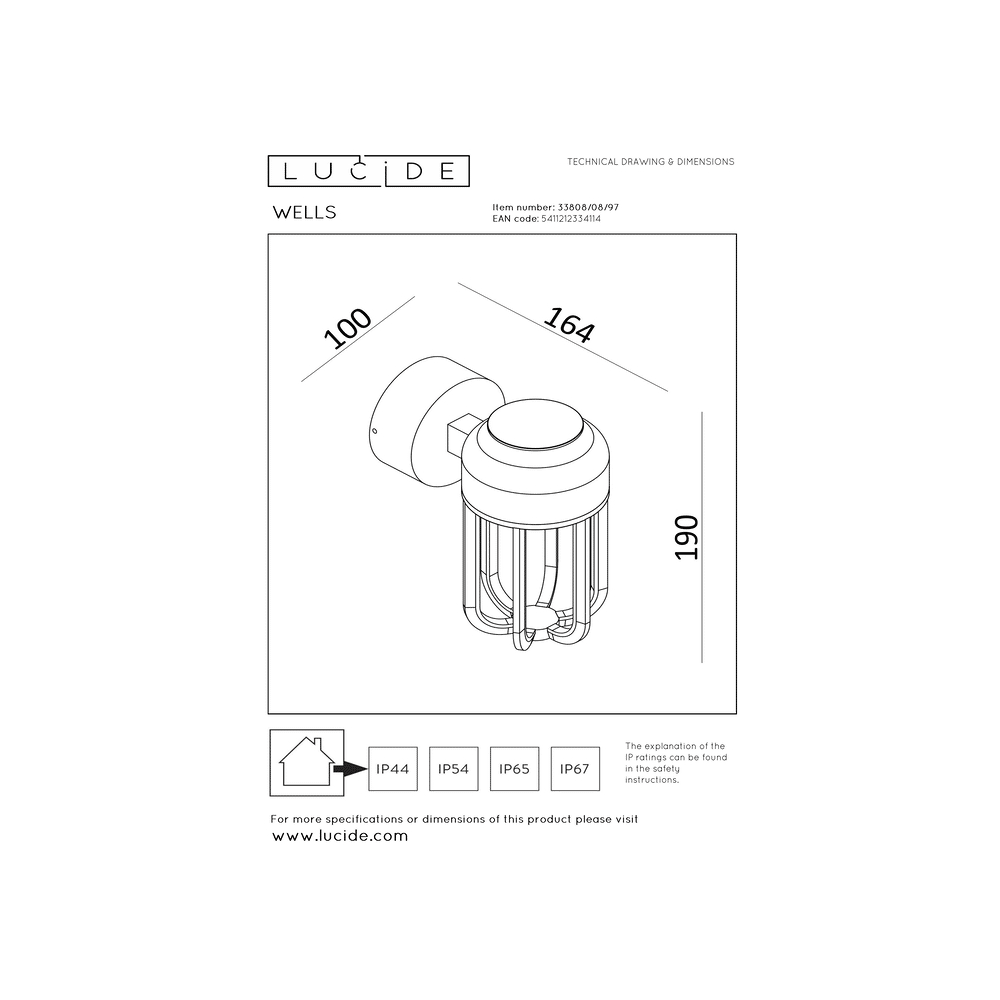 De Lucide WELLS wandlamp combineert robuustheid, stijl en betrouwbare buitenverlichting, waardoor het een perfecte keuze is voor elke gevel of buitenruimte.