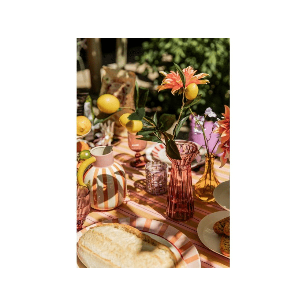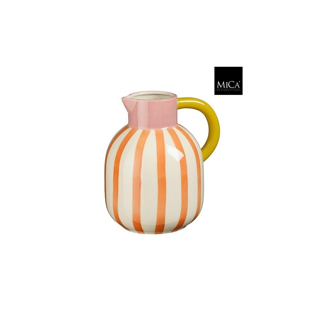 De mag kan in oranje, met een lengte van 18 cm, breedte van 15 cm en hoogte van 20 cm, voegt direct kleur en speelsheid toe aan jouw tafel. Perfect voor water, sap, limonade of als decoratief element bij ontbijt, lunch of diner.