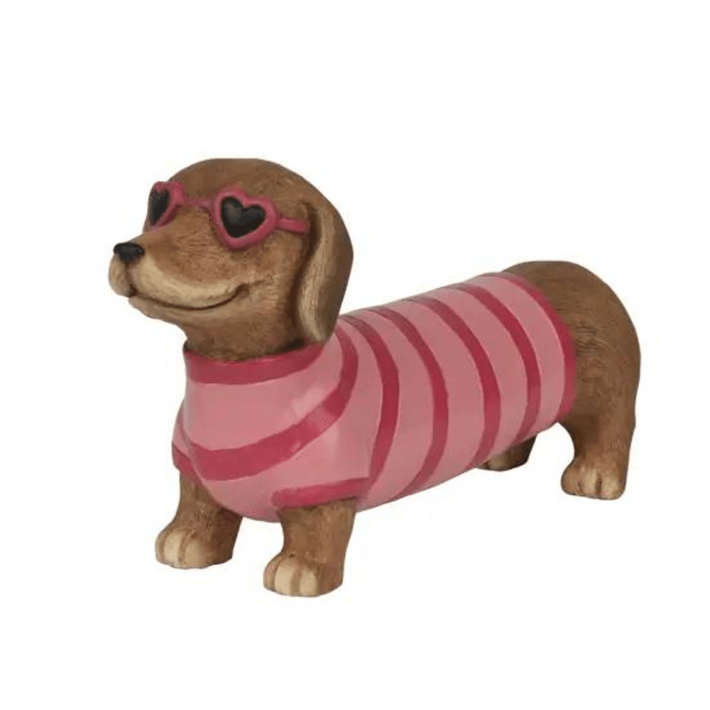 Deze decoratieve hond is vervaardigd uit stevig magnesium, waardoor hij duurzaam en weerbestendig is. Ideaal voor binnen en buiten, en een blikvanger op elke plank, tafel of in de tuin. De robuuste afwerking zorgt voor een luxe uitstraling zonder zwaar te zijn.