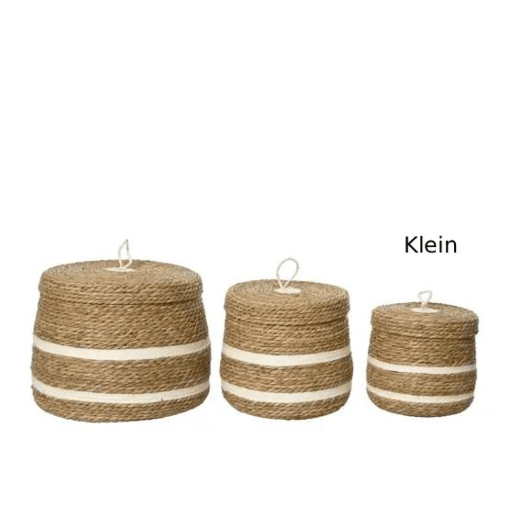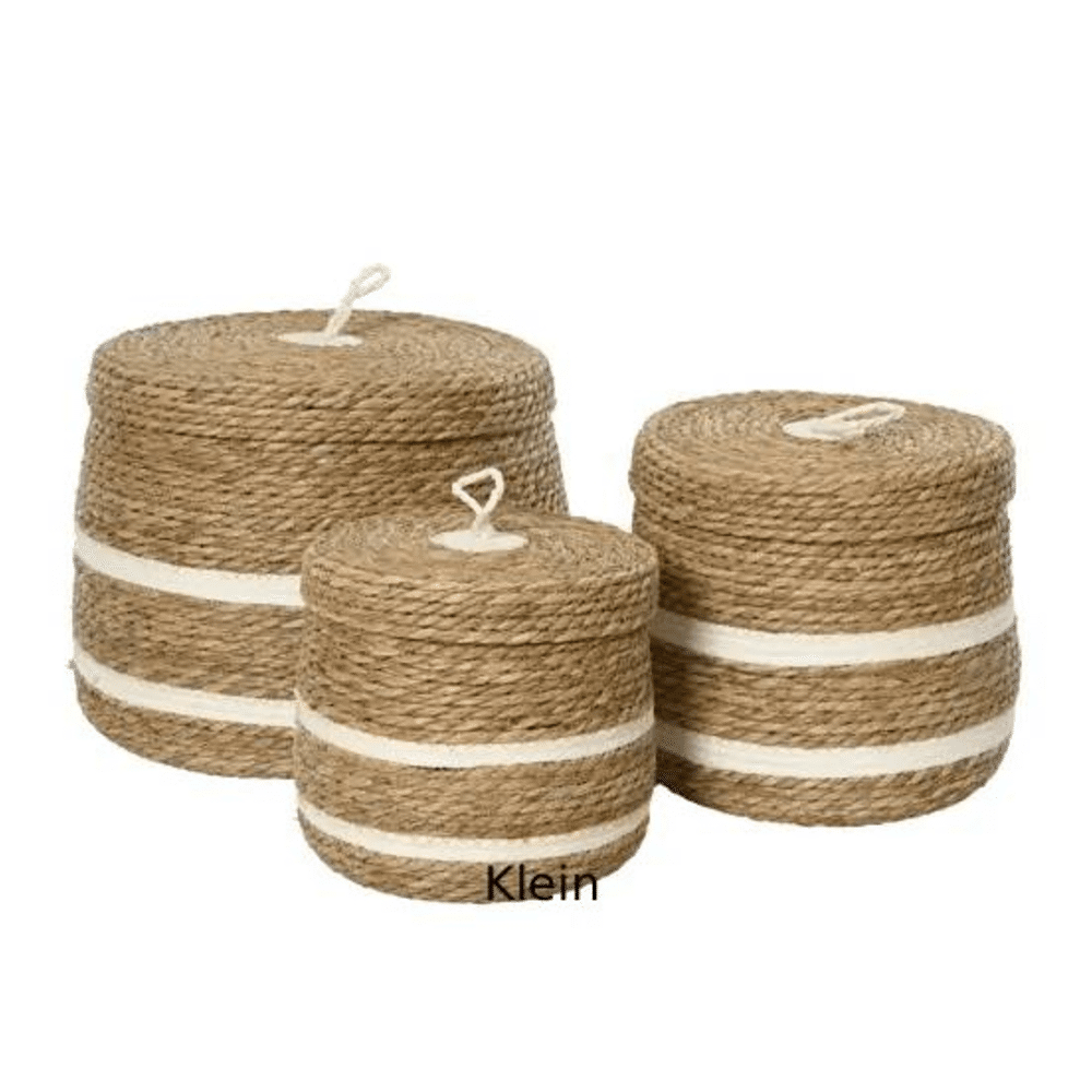 Deze kleine mand van zeegras voegt een warme en natuurlijke uitstraling toe aan je interieur. Ideaal voor het opbergen van kleine spullen of als decoratief accent op planken, tafels of kasten.
