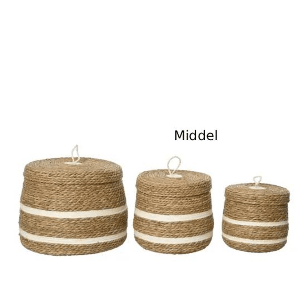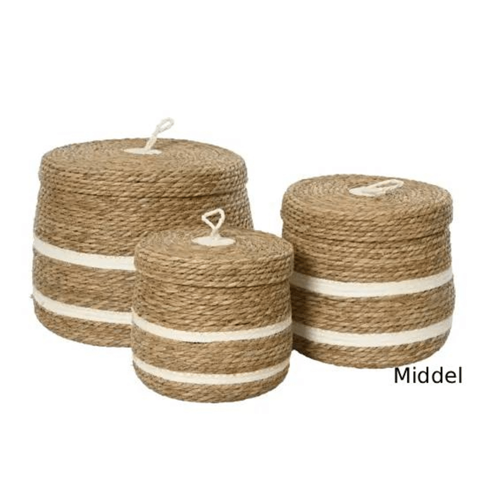 Deze middelgrote mand van zeegras brengt direct een warme en natuurlijke uitstraling in je interieur. Ideaal voor het opbergen van spullen terwijl hij een decoratief accent toevoegt.