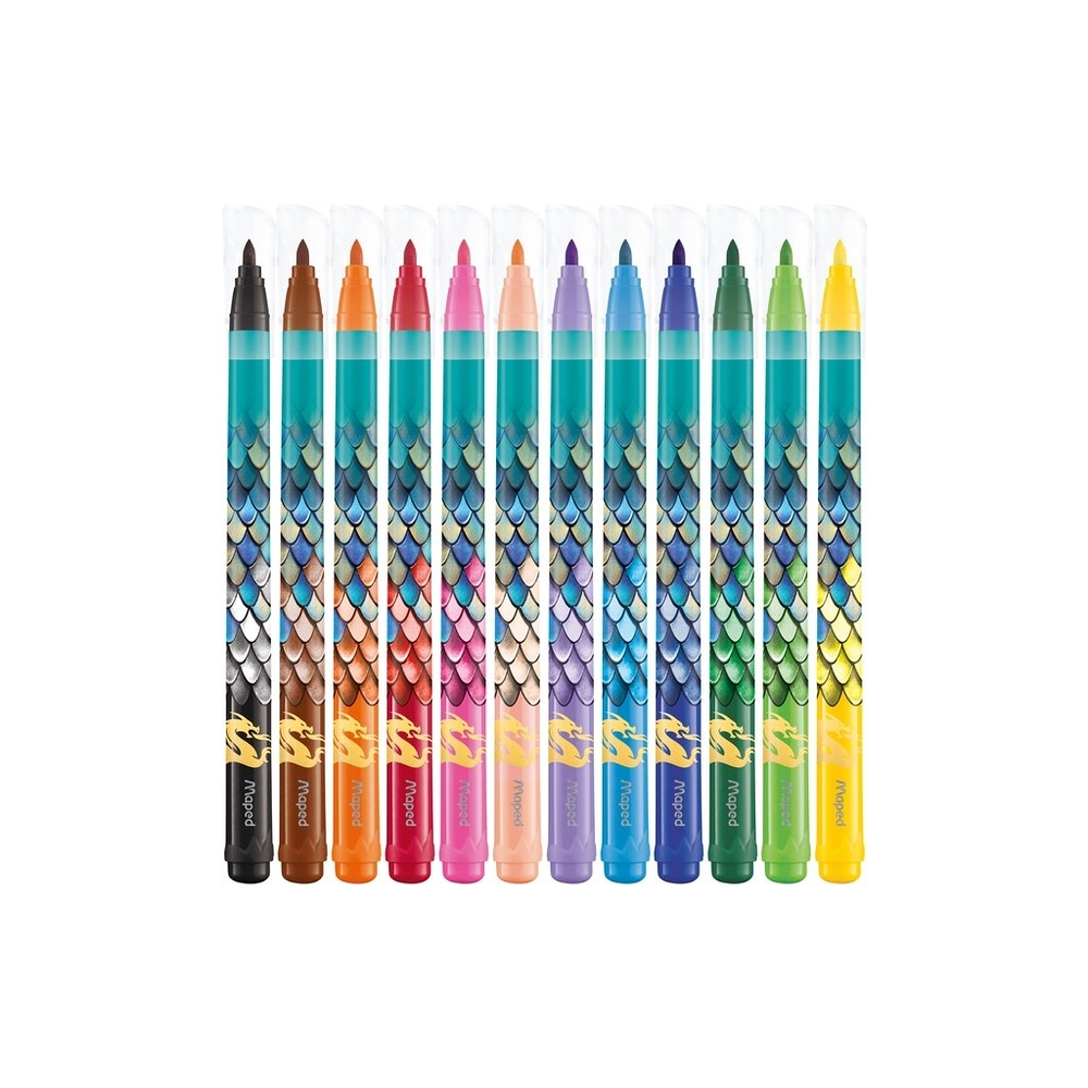 De Maped Dragon Viltstiften 12 Stuks zijn perfect voor creatief plezier en nauwkeurig inkleuren. Stevig, ergonomisch en kleurrijk, zodat kinderen en hobbyisten hun tekeningen altijd tot leven kunnen brengen.