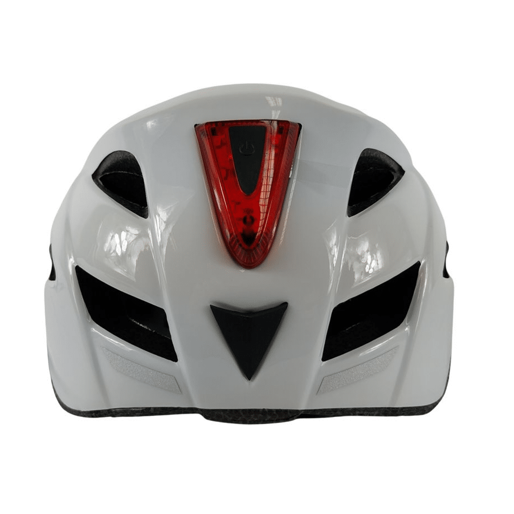 Deze fietshelm is lichtgewicht en ergonomisch ontworpen voor optimaal draagcomfort. De ingebouwde rode LEDs achteraan zorgen voor extra zichtbaarheid en veiligheid, terwijl het moderne witte design de helm een stijlvolle uitstraling geeft.
