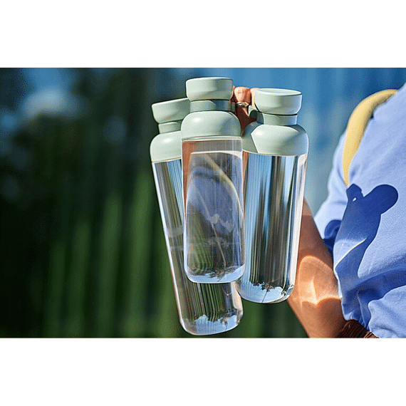 De waterfles beschikt over twee openingen: één om comfortabel uit te drinken en een tweede (grote) opening om de fles gemakkelijk schoon te maken en/of eenvoudig te vullen met je favoriete fruit of kruid.