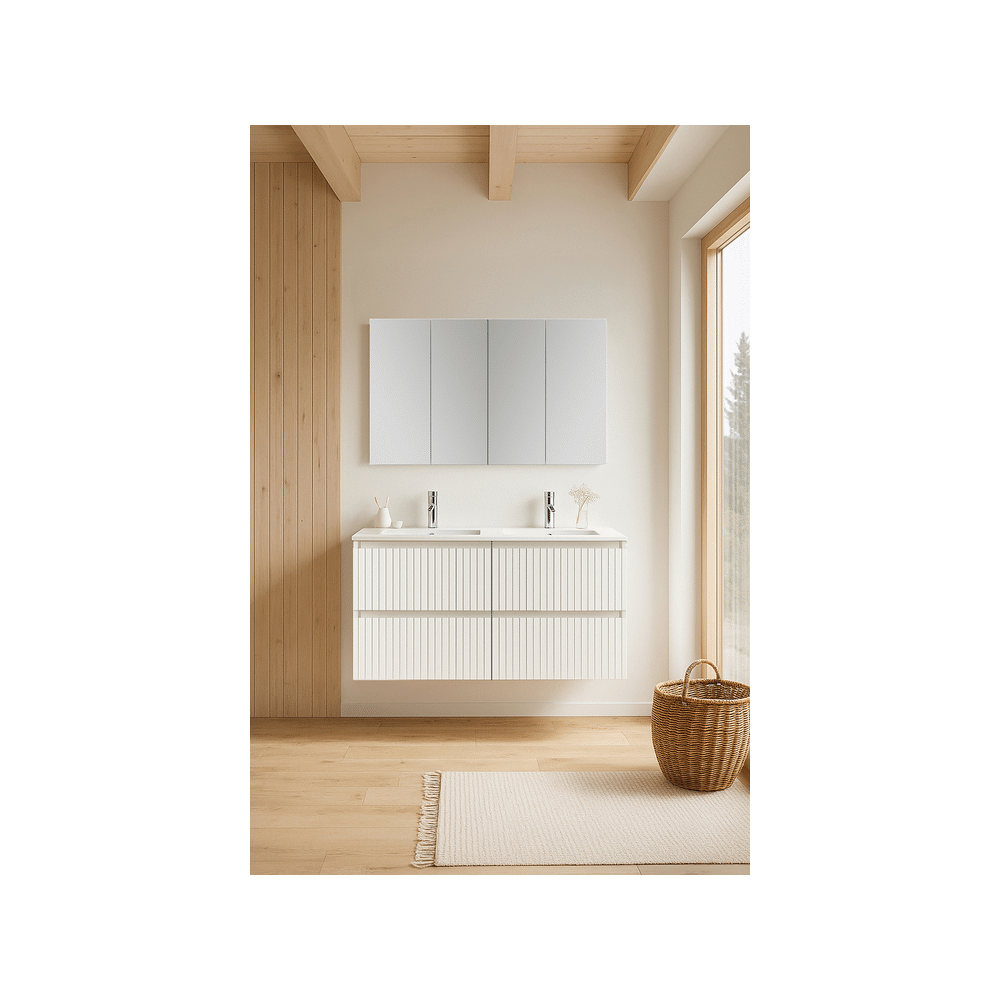 De grootste uitvoering binnen de Manhattan-reeks zorgt voor maximale opbergruimte en een luxueuze uitstraling. De witlakglans afwerking met groefdetails geeft het meubel een verfijnde look, terwijl de vier lades een zee aan overzichtelijke opbergruimte bieden. Met wastafel en toiletkit inbegrepen ben je meteen voorzien van een volledige, hoogwaardige set.