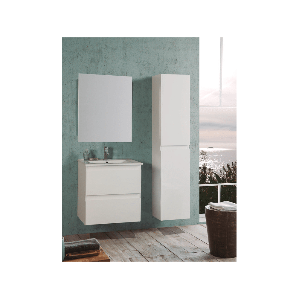 Deze Valentina meubelset combineert een strak design met praktische functionaliteit. De mat witte lakafwerking zorgt voor een rustige, moderne uitstraling en de twee softclose lades bieden voldoende opbergruimte. De inbegrepen wastafel en spiegel maken de set direct compleet voor je badkamer.