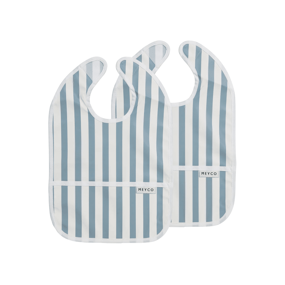 De Meyco Slab 2-pack Fat Stripe Jeans Blue is stijlvol, praktisch en beschermt de kleertjes van je kleintje. Waterdicht, duurzaam en altijd klaar voor gebruik, perfect voor kleine knoeiers die hun eten zelf willen ontdekken.