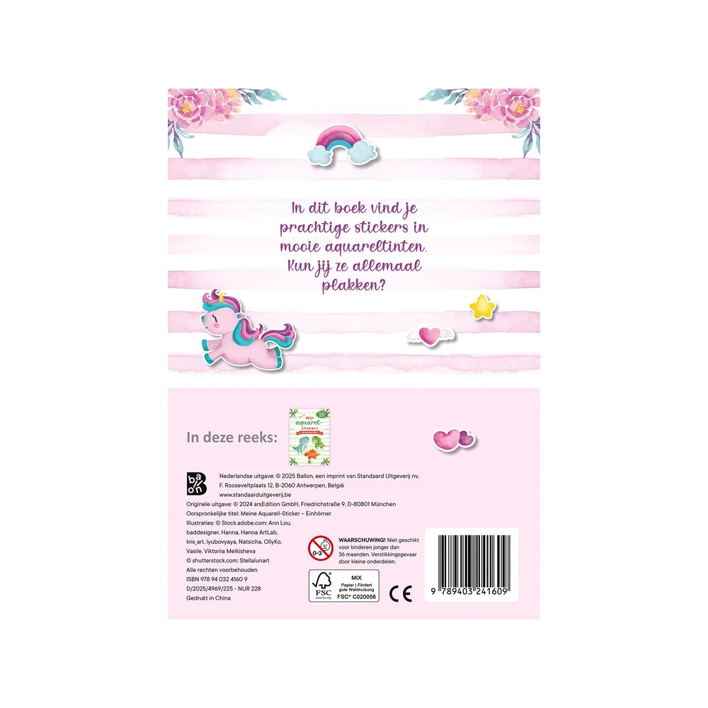 Een creatief stickerboek met prachtige aquarelstickers van eenhoorns. Ideaal voor fantasierijk spel, knutselen en het stimuleren van fijne motoriek.