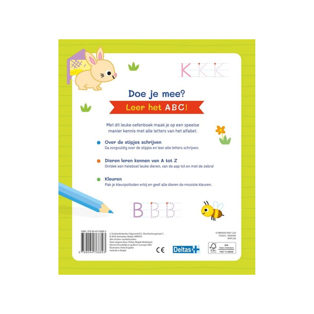 Laat je kleuter op speelse wijze kennismaken met het alfabet met *Mijn eerste ABC oefenboek* van Deltas. Elke letter komt tot leven met schattige dieren, leuke kleurplaten en schrijfoefeningen met stipjes. Perfect voor nieuwsgierige kindjes van 4 tot 6 jaar!Spelenderwijs leren schrijven