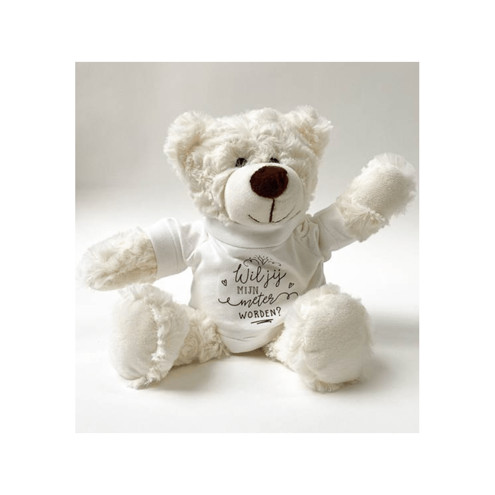Deze Mimo Beer in wit is een lief en knuffelbaar cadeau om iemand op een speciale manier te vragen je meter te worden. Gemaakt van zacht en veilig materiaal dat geschikt is voor alle leeftijden. Een blijvende herinnering aan een bijzonder moment.