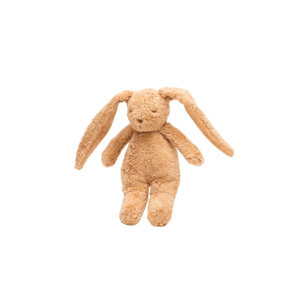 De Bunny Cappuccino uitvoering heeft een neutrale, warme kleur die makkelijk te combineren is met andere knuffels en slaapkameraccessoires. Duurzaam en zacht, zodat de knuffel jarenlang mee kan met jouw kindje.