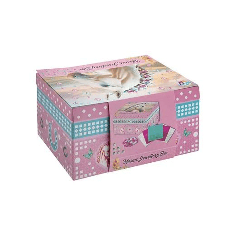 Met Mosaic Jewellery Box Paard wordt knutselen een sprankelend avontuur. Plak de steentjes, bewonder je creatie en geniet van een unieke en persoonlijke juwelendoos! Een creatief project dat blijft schitteren!
