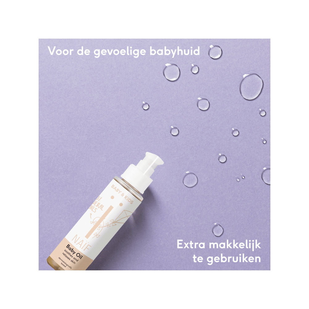Naïf Verzachtende Baby Olie is voor verschillende doeleinden te gebruiken. Bijvoorbeeld na het bad of als massageolie. De babyolie is dermatologisch getest, zacht voor de huid en het parfum is allergeenvrij.