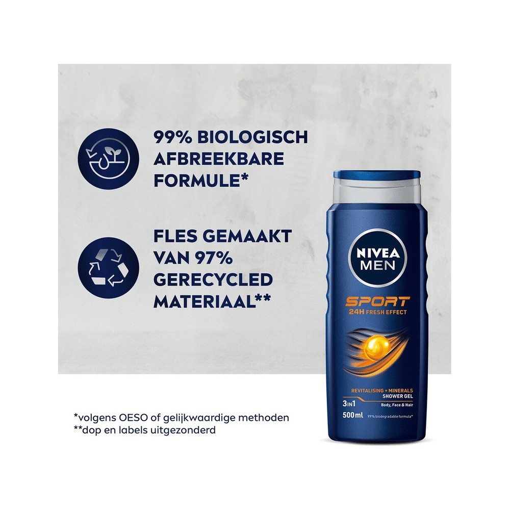 Met Nivea Men Sport 500 ml kies je voor een frisse geur, zachte reiniging en pure energie—perfect voor elke actieve man.