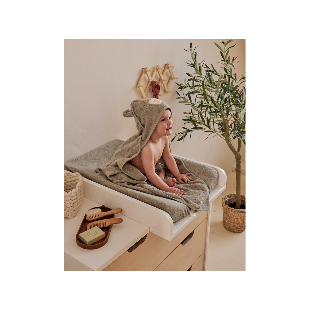 De badcape met Orso-borduursel is ontworpen om je baby na het badje warm, droog en comfortabel te houden. Gemaakt van extra dikke badstof, biedt deze cape optimale absorptie en warmte. De geïntegreerde capuchon en het bijpassende washandje maken van dit duo een praktisch en stijlvol onderdeel van het dagelijkse badritueel.