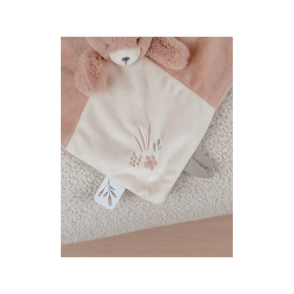 Met haar ultra-zachte poederroze Veloudoux-vacht is Lily de beer het ideale knuffeldoekje om je baby vanaf de eerste dagen te vergezellen. De subtiele, natuur-geïnspireerde borduursels geven haar een tijdloze charme en brengen dagelijks rust, zachtheid en geborgenheid.