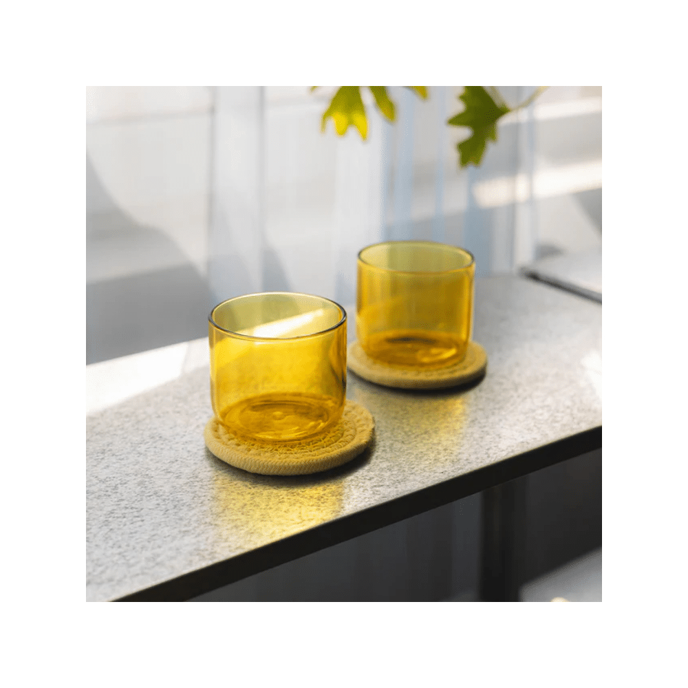 De Ona Fizz glazen 29cl in geel combineren vrolijk design met praktische duurzaamheid. Ideaal voor elke gelegenheid en een kleurboost voor je tafel.