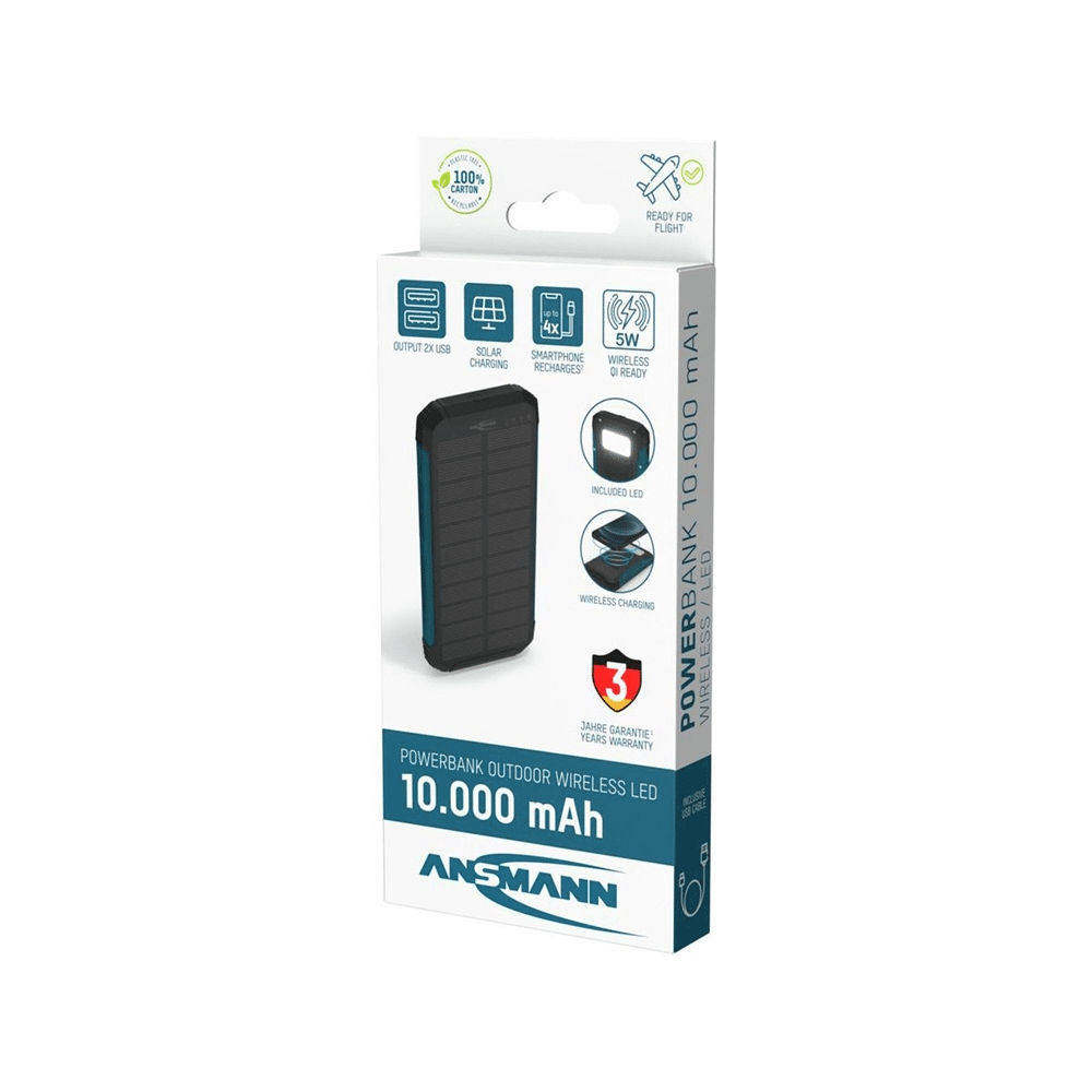 - Product: Outdoor Powerbank 5w Draadloos Opladen 3w Led-lamp En Zonnepaneel. 2× Usb A-poorten 10000 Mah