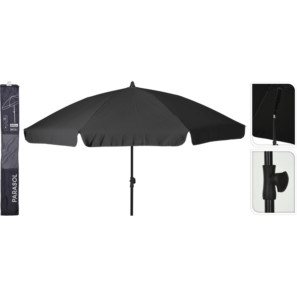De Parasol 200cm Donkergrijs combineert praktisch gebruik met een moderne uitstraling. Een compacte en stijlvolle parasol die zorgt voor verkoelende schaduw op zonnige dagen.