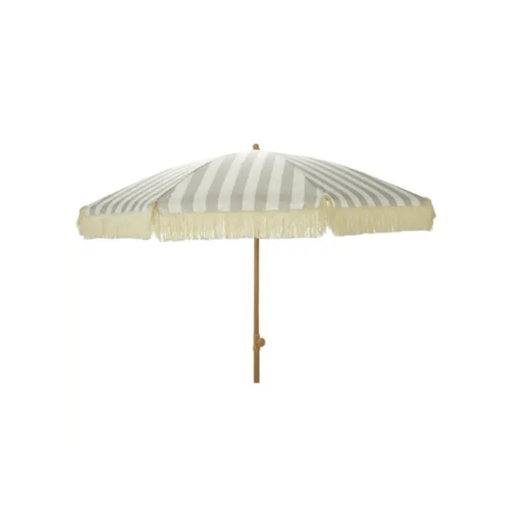 De Parasol 200cm Taupe-wit biedt bescherming tegen zon en voegt een moderne uitstraling toe aan je tuin, balkon of terras.