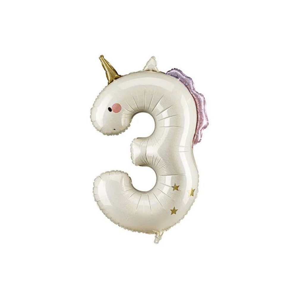 Party Deco Folie Ballon Nummer 3 Unicorn 93cm