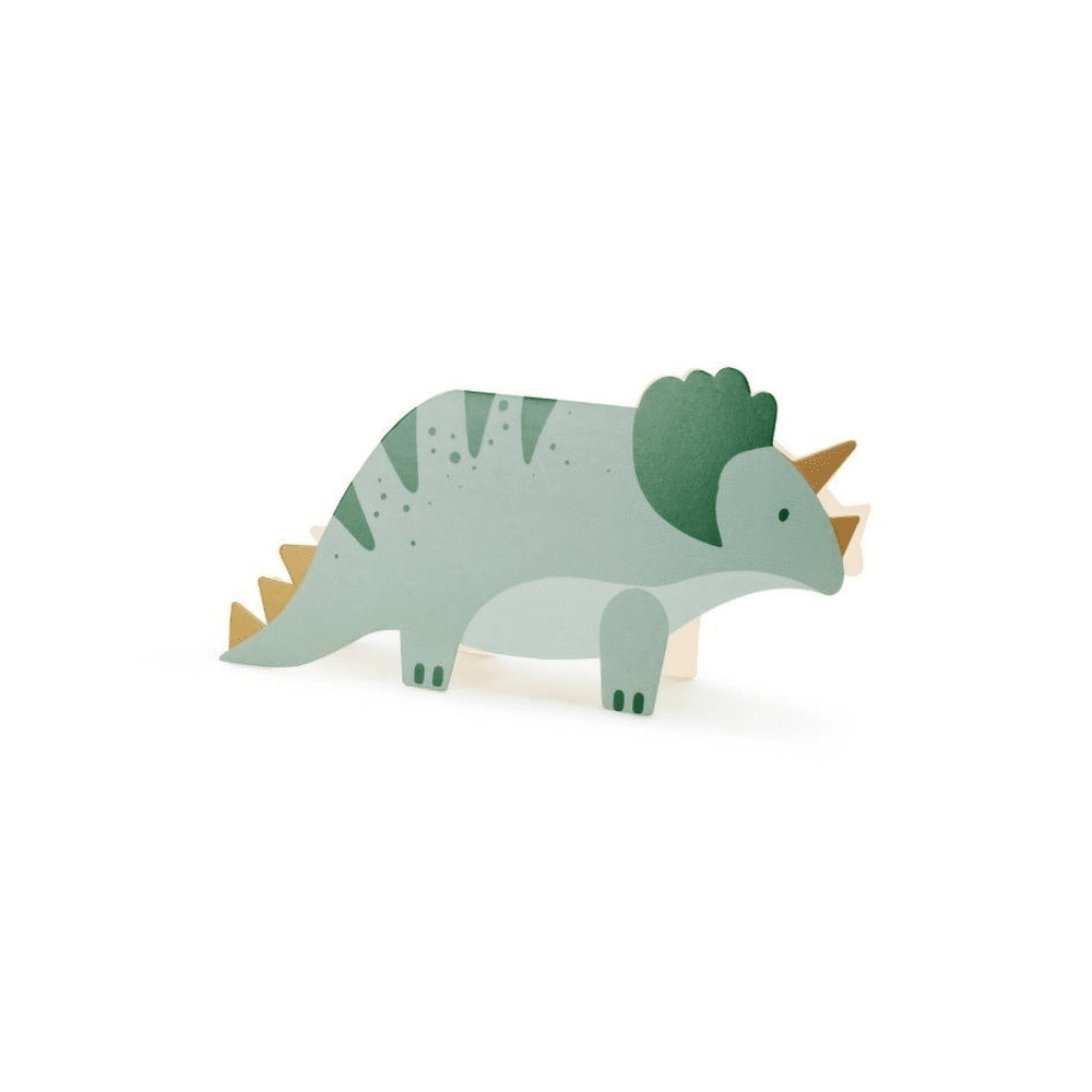 Deze Party Deco uitnodigingen Triceratops 6 stuks zijn kleurrijk, vrolijk en direct klaar om gebruikt te worden. Ze voegen meteen een speels dinosaurusaccent toe en passen perfect bij een themafeest vol avontuur en plezier.