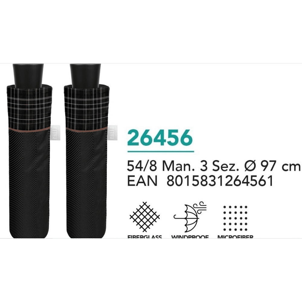 De Perletti Mini Paraplu Man26456 Border is compact, stijlvol en betrouwbaar. Blijf droog en elegant, waar je ook gaat!