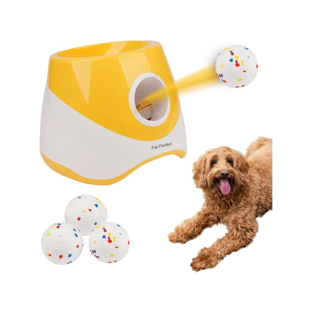 De Pet Perfect automatische ballenwerper in geel, maat M zorgt voor urenlang speelplezier voor middelgrote honden. Het slimme automatische mechanisme werpt ballen op een consistente afstand zodat je hond actief en vermaakt blijft, ook wanneer je zelf even geen tijd hebt.
