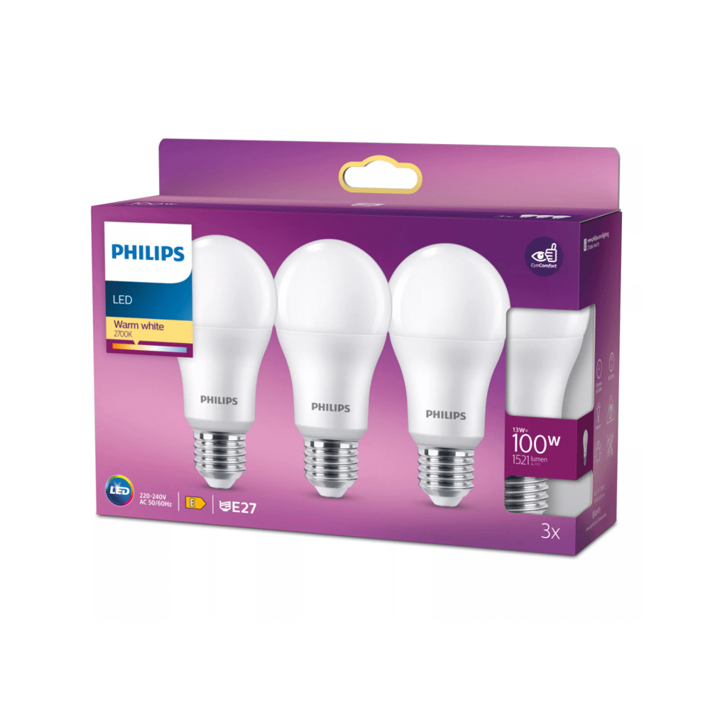 - Product: Philips Led Classic 100w A60 E27 Warm Wit Frosted Niet Dimbaar 3-Pack
