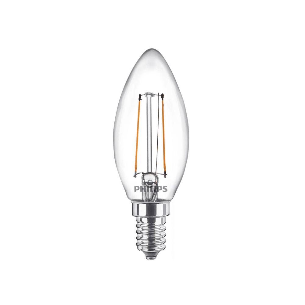De Philips Filamentkaarslamp helder 25W B35 E14 is een duurzame, energiebesparende en oogvriendelijke LED-lamp die elke ruimte een warme en gezellige uitstraling geeft.