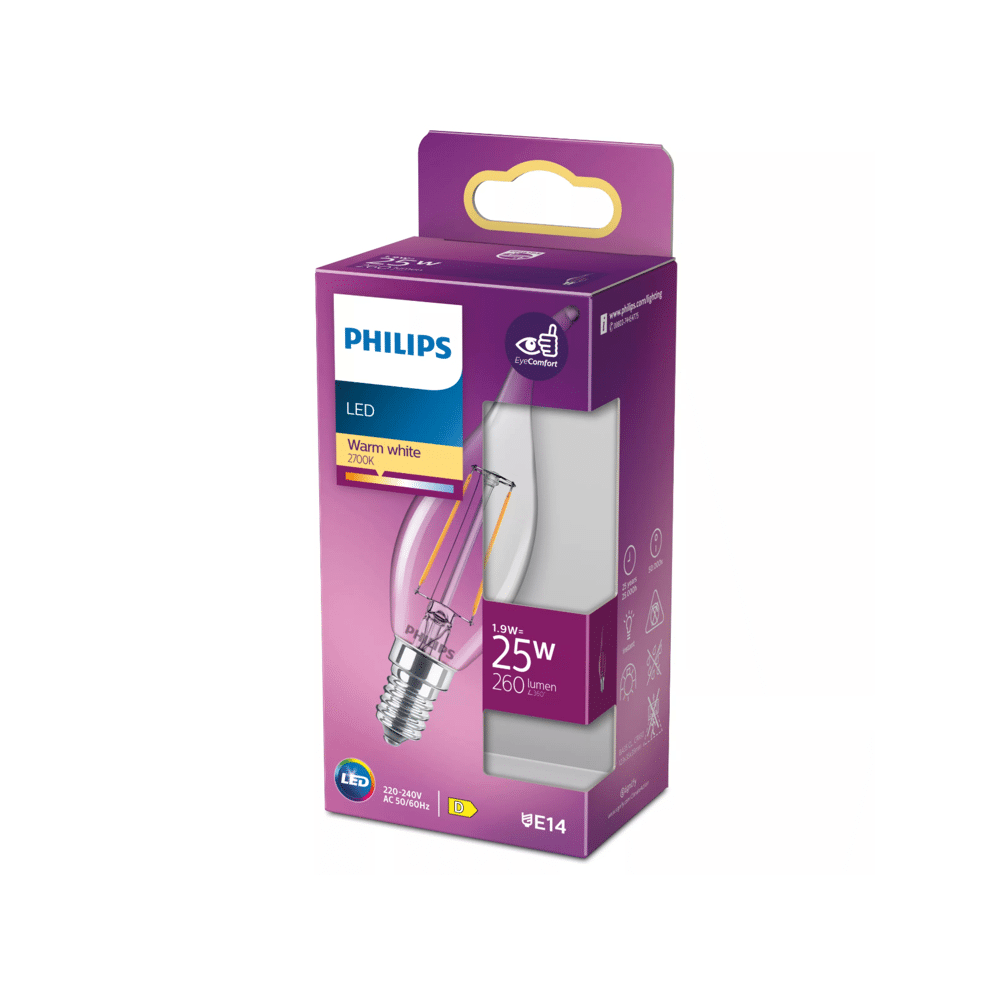 Breng direct een warme, uitnodigende gloed in je huis met de Philips Filamentkaarslamp helder 25W BA35 E14. Deze heldere LED-lamp combineert energiebesparing met langdurig, oogvriendelijk licht.